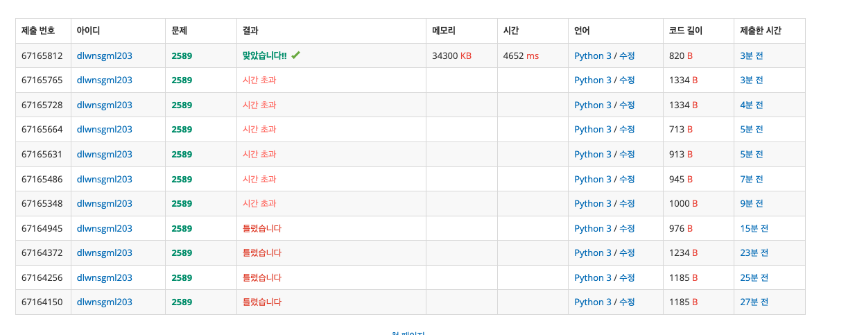 하다하다 결국 다른 이의 코드를 참조했으나 번번히 시간초과가 발생했다.