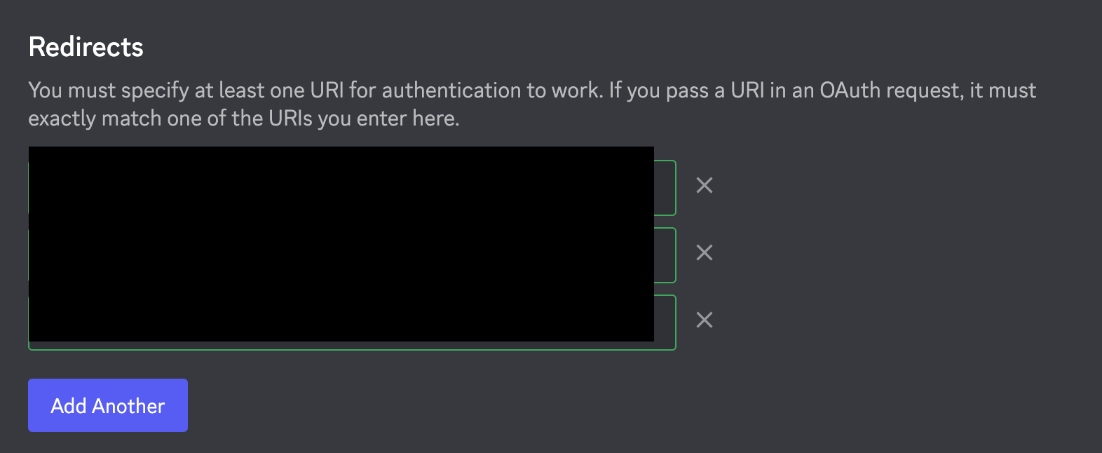 Discord의 OAuth2 > General > Redirects에 추가하면 된다.