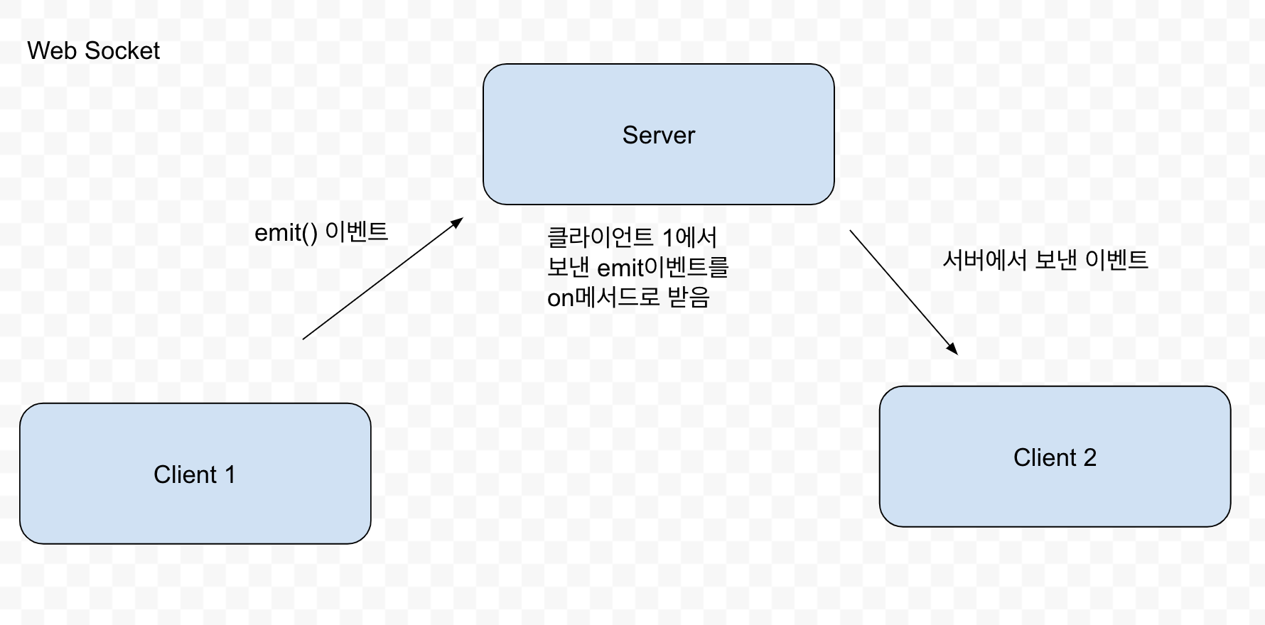 서버는 미리 설정된 이벤트에 따라 다른 클라이언트(또는 전체, 혹은 방(room)에 있는 모든 등등)에게 이벤트를 발생시킨다.