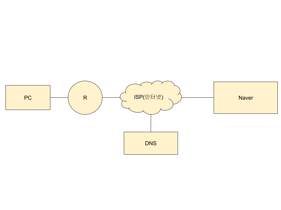 브라우저는 라우터를 통해 DNS서버에 접속하며 네이버의 IP주소를 받아온다.