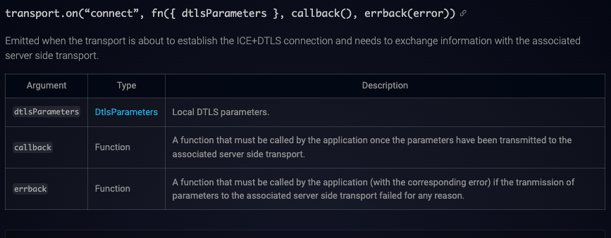 async ({ dtlsParameters }: any, callback: any, errback: any) => {