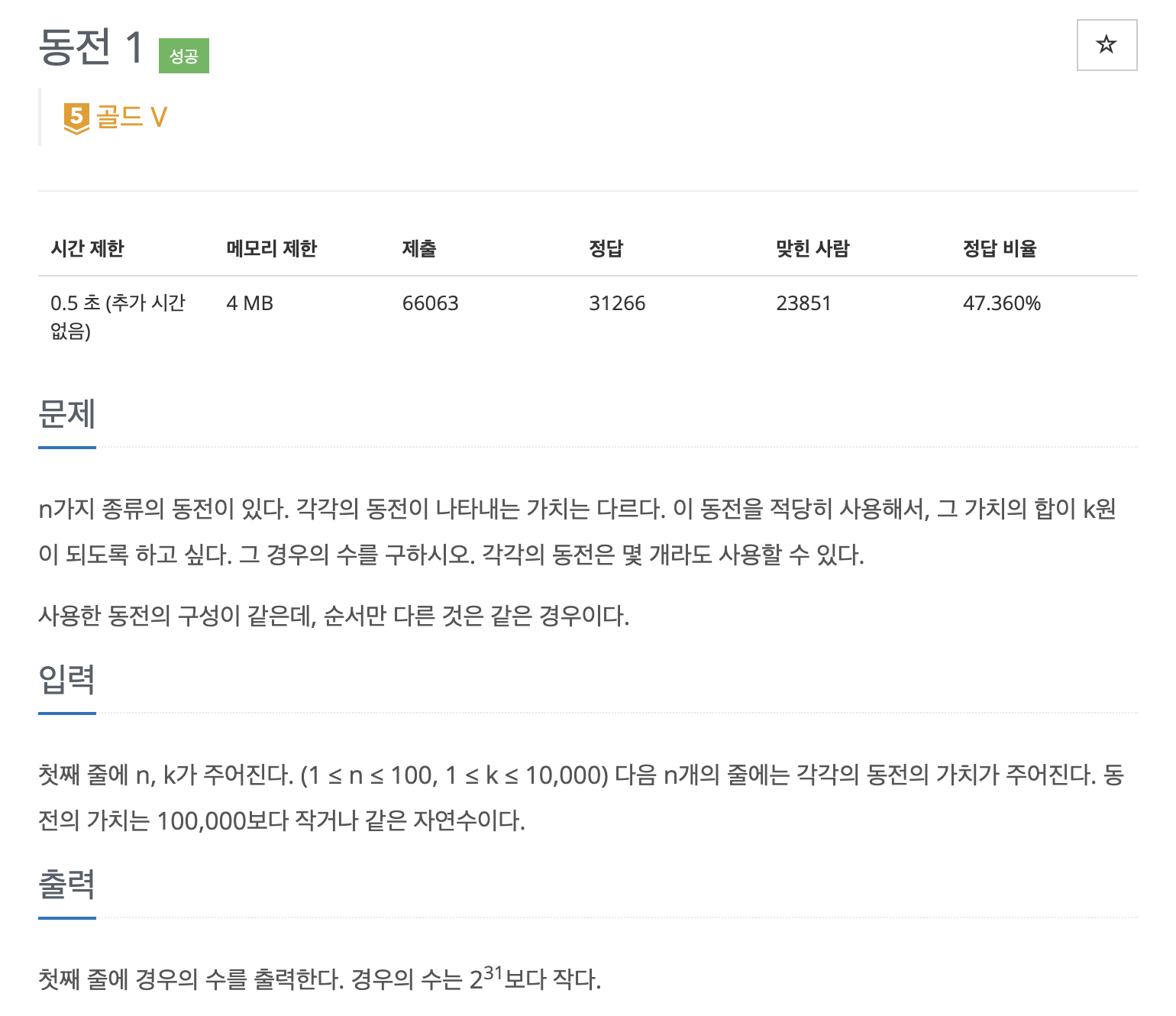 2원짜리 동전은 1원짜리 동전으로 나눌 수 있으니 이를 이용해 dp를 작성하면 된다 생각했다.