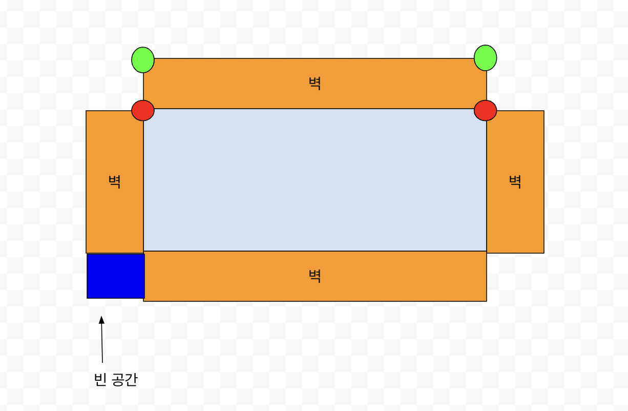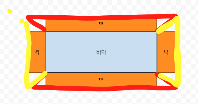 위 이미지는 2D 시점이며 2D 시점에서의 방은 벽과 바닥으로 구성됩니다.