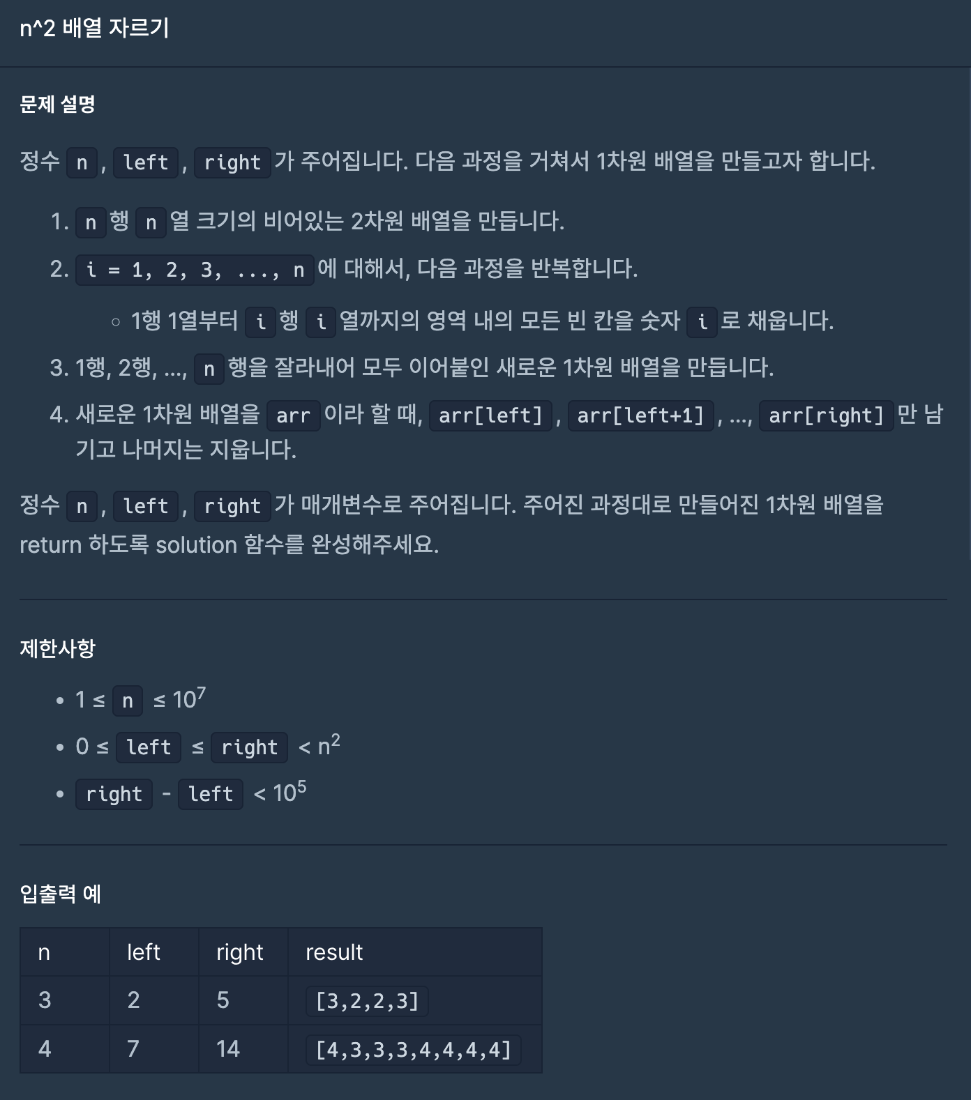 우선 입출력 예(n=2, left = 2, right = 5)로 설명하겠다