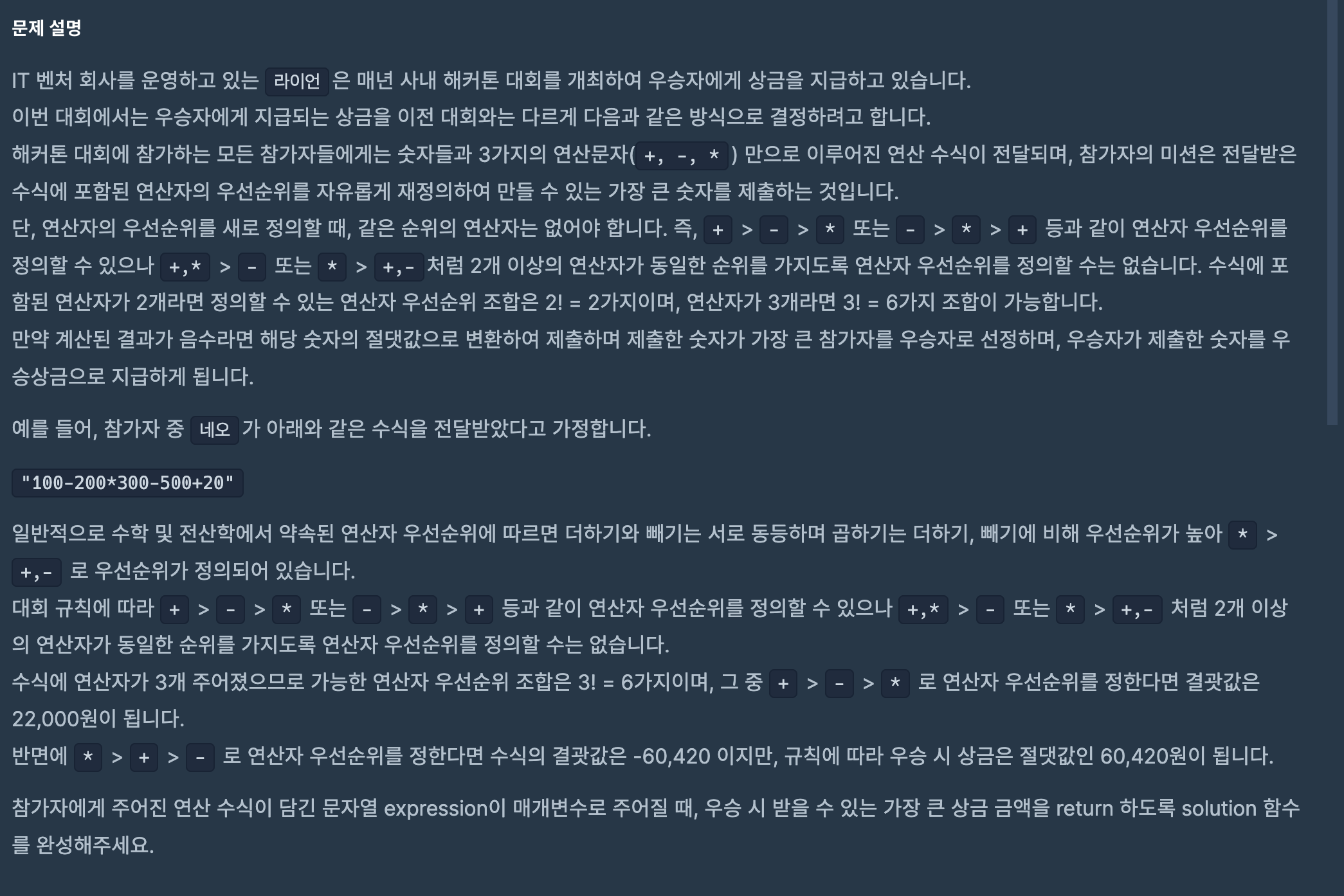 def solution(expression):