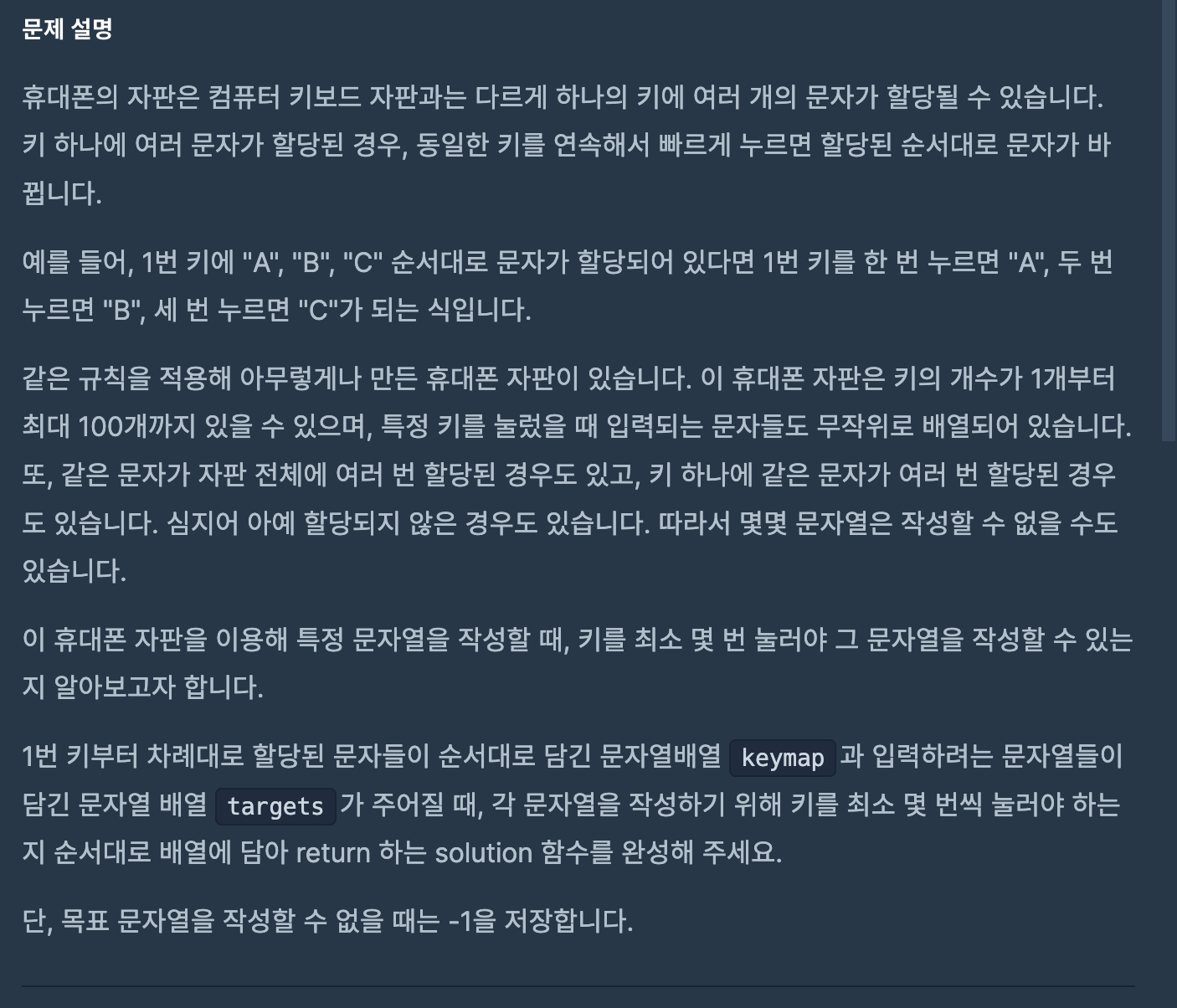def solution(keymap, targets):